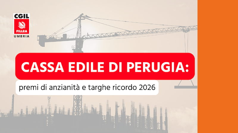 La Cassa Edile di Perugia prevede l'assegnazione di 20 premi di anzianità del valore di € 260 lordi e targhe ricordo per i lavoratori in attività e 20 premi di anzianità di pari importo e targhe ricordo destinati ai lavoratori pensionati.